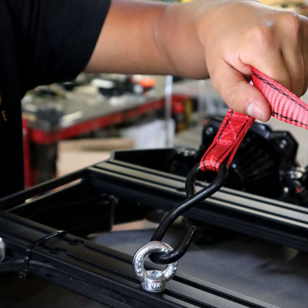- Large opening hole is compatible with most tie-down cam buckle straps, ratchet straps, cinch straps, and bungee cords